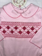 The most beautiful soft pima cotton hand smocked babygrow with strawberry embroidery.
