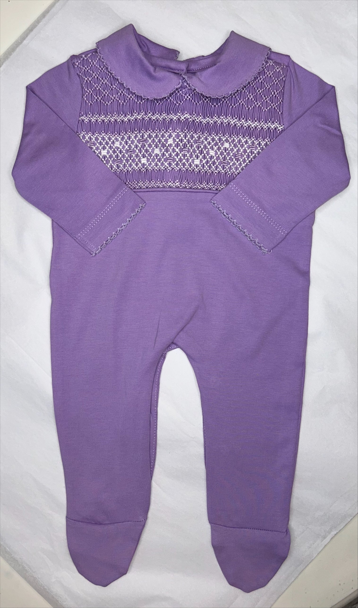 Purple Hand Smocked Babygrow