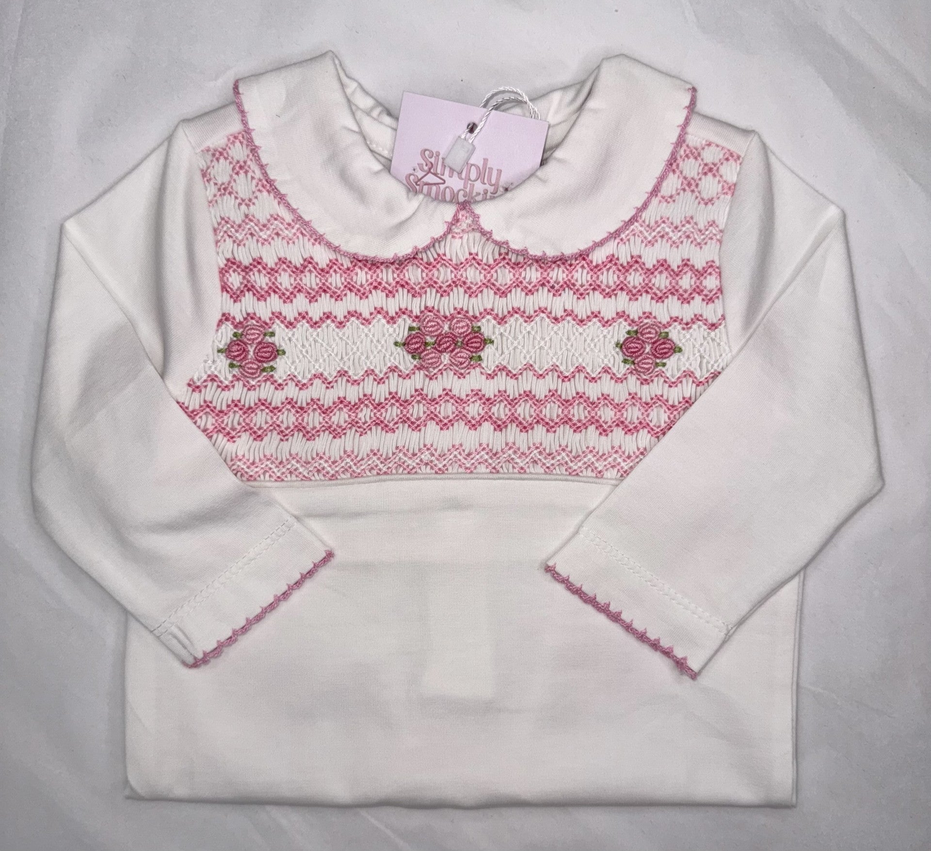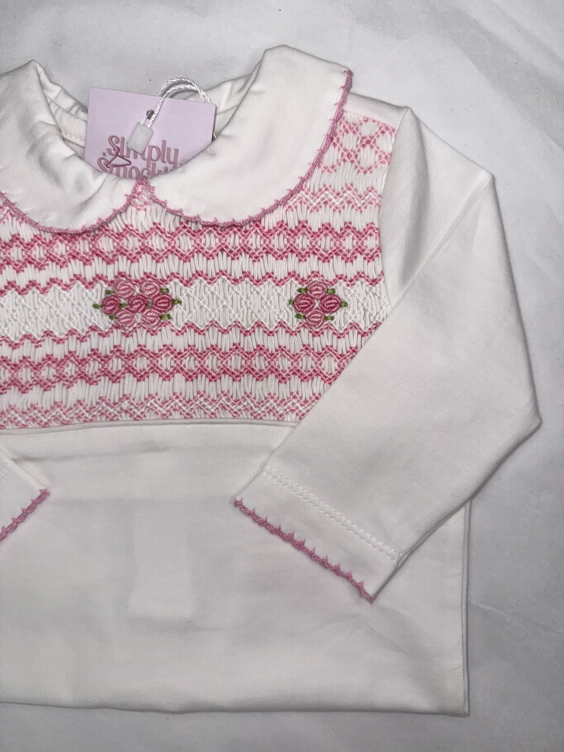 Pink & White Flower Smock Babygrow