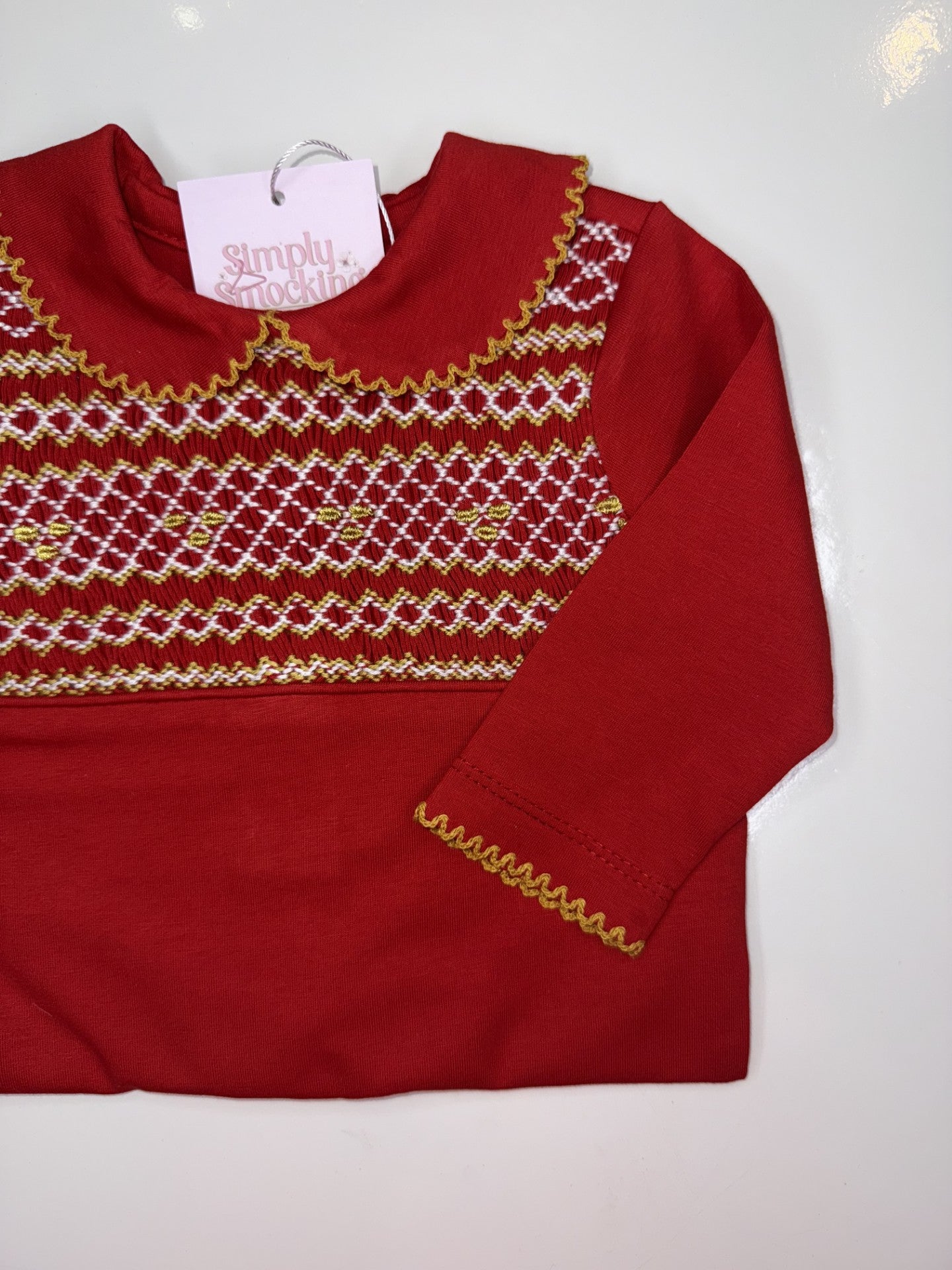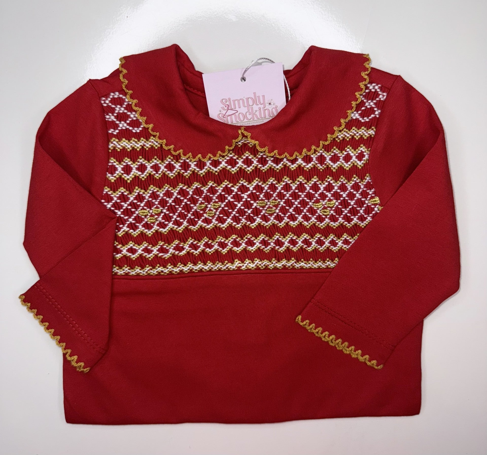 Girls Red & Gold Smock Babygrow