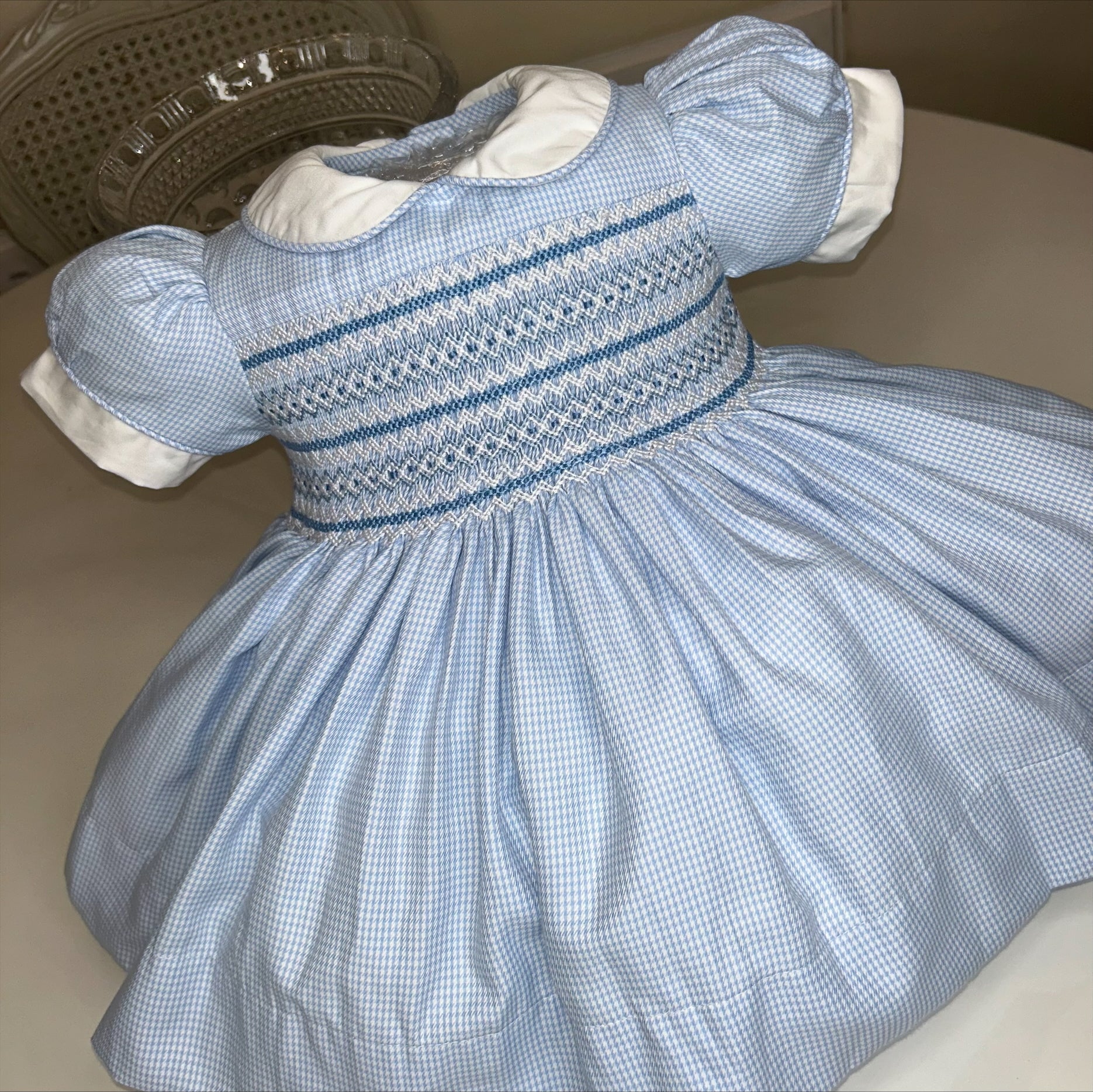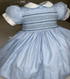 Smocked back and front, fitted petticoat bows and knickers. (headband bow for smaller sizes)