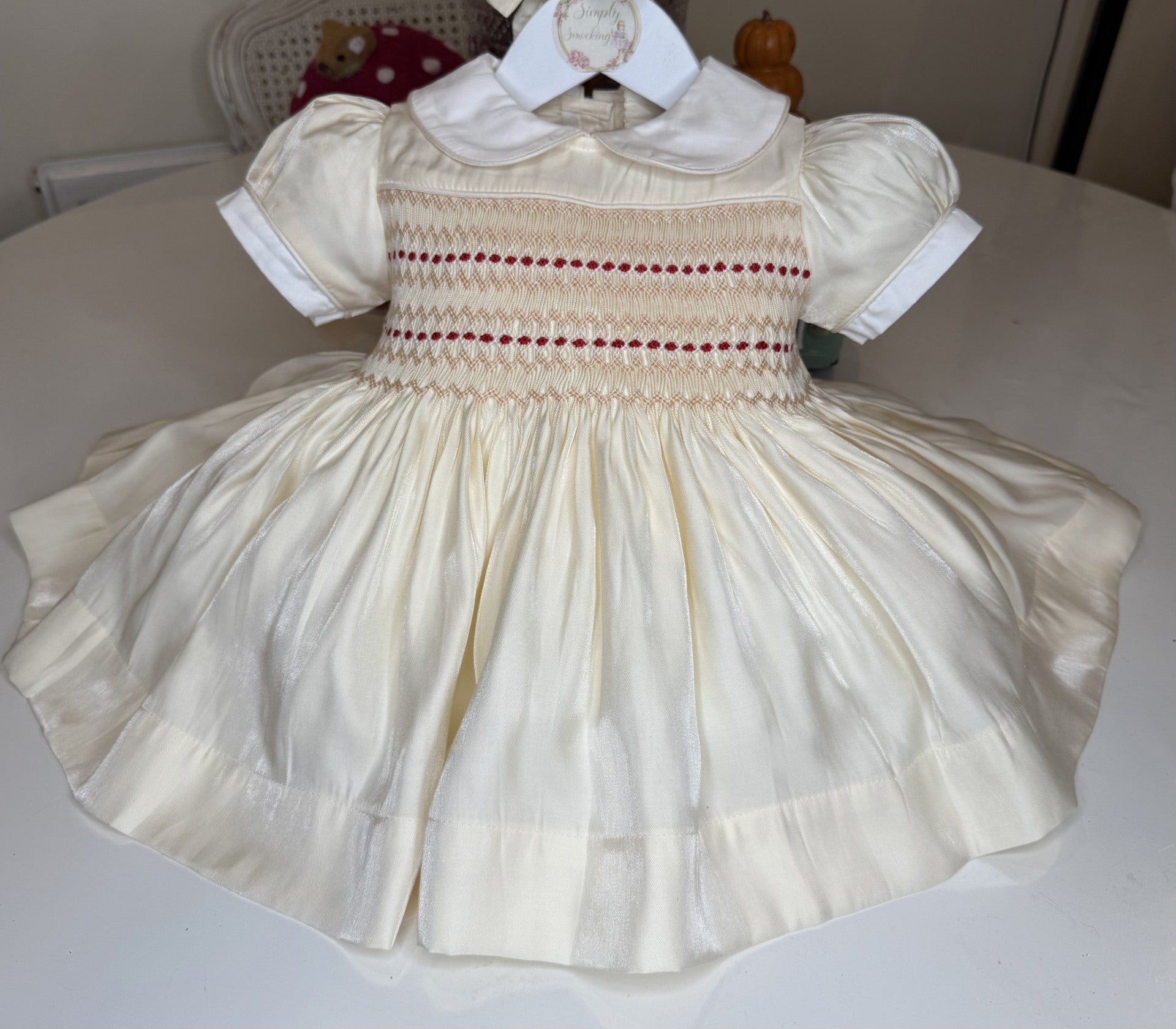 Luxury Champagne Silky Girls Smock Dress