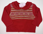 Accents of shimmering gold thread sparkle within the smocking — perfect for Christmas photos or family gatherings.